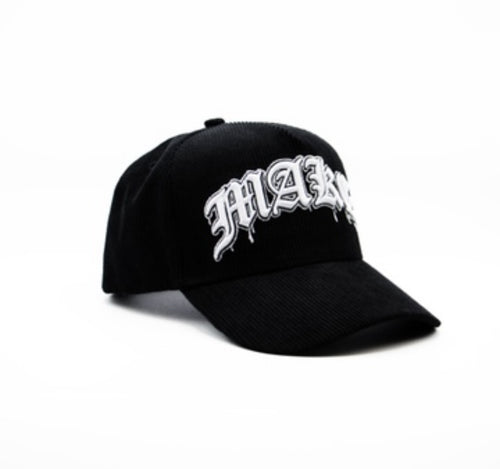 MKSK8 (BLACK CORDUROY x OLDE ENGLISH) "A-FRAME" LOGO HAT